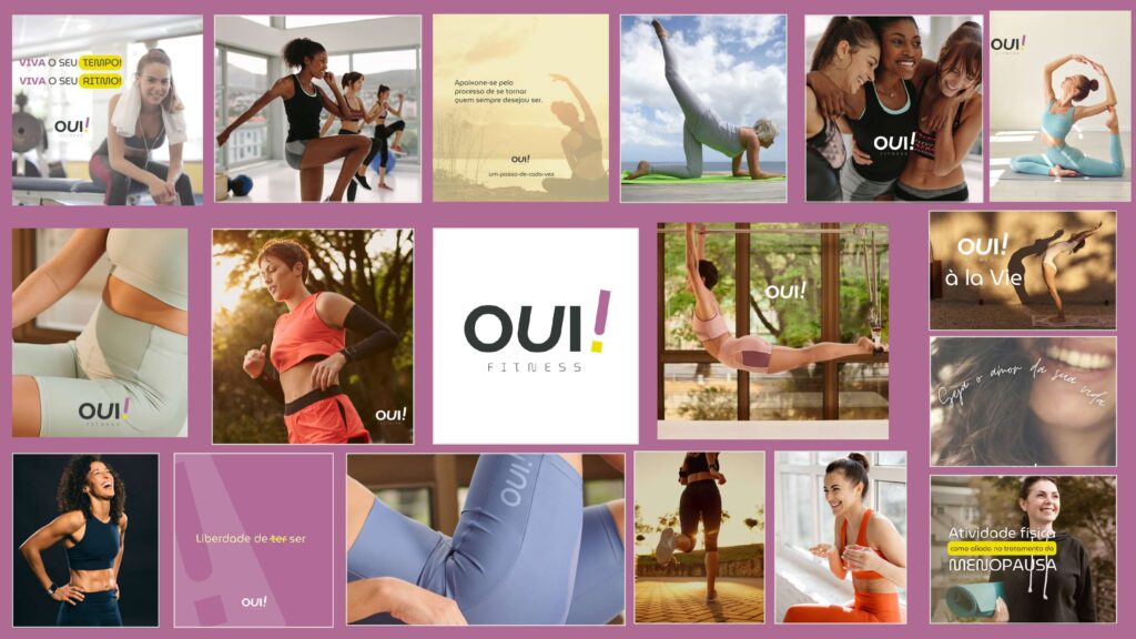 Nosso trabalho com a Oui! Fitness resultou em uma identidade que comunica a essência da marca de forma clara e impactante, criando uma conexão profunda e emocional com seu público, ao mesmo tempo que reflete a jornada de transformação que a marca proporciona.